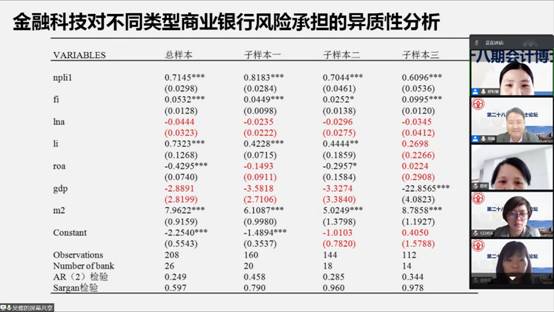 会上,吴蝶等5人分别作了题为《金融科技发展对商业银行风险承担的影响研究》、《区域金融发展对企业R&D投入的影响》、《绿色债券的漂绿行为研究—以北务水控GN001为例》、《金融结构与技术创新的协同度及其对经济增长的影响》、《金融结构与技术创新的协同度及其对经济增长的影响》的工作论文报告,点评老师们建议各报告人规范论文书写格式、优化研究模型、明确样本选取理由;提高问题与假设相关度、并从现实和学术意义方面展开对研究意义的论述。本次论坛,点评老师和参会老师们认真细致地指出了报告人论文中存在的问题,并给出极具建设性的意见,让与会的老师和同学们在热烈的学术交流中收获颇丰。