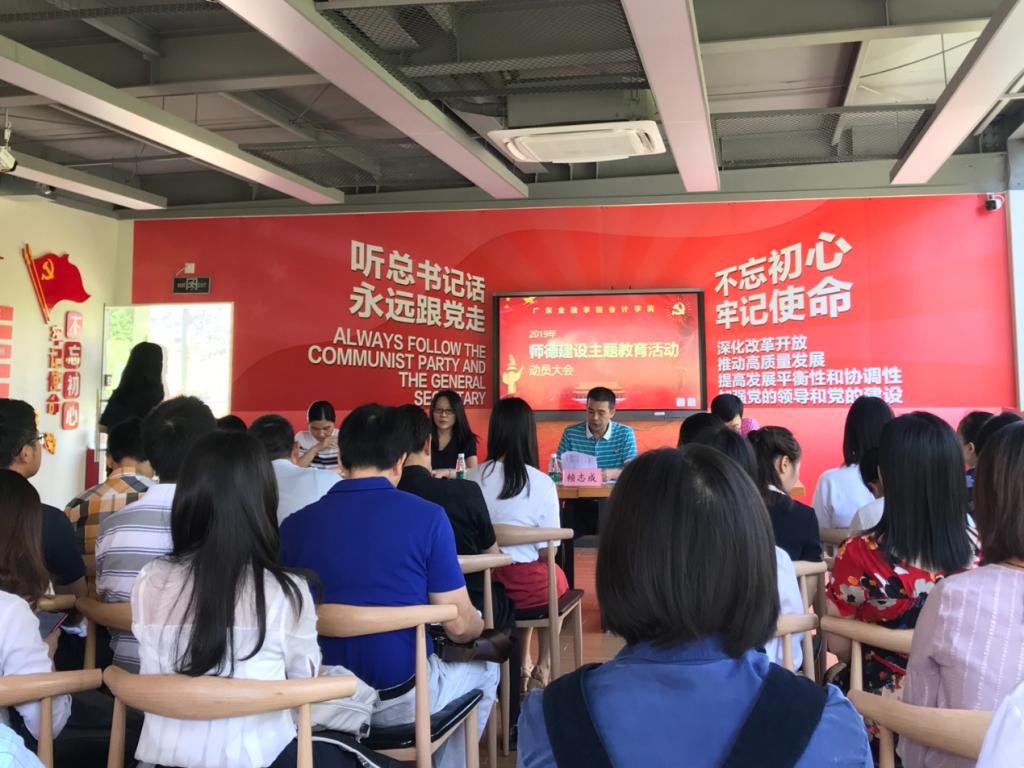 会议围绕“自觉爱国守法,潜心教书育人”的主题,深入贯彻落实习近平总书记关于教育的重要论述和对广东重要指示批示精神,教育和引导广大教师及教育工作者不忘初心、牢记使命,坚持中国特色社会主义办学方向,引导和动员全体教工全力配合、积极参与到师德建设主题教育月活动当中去。