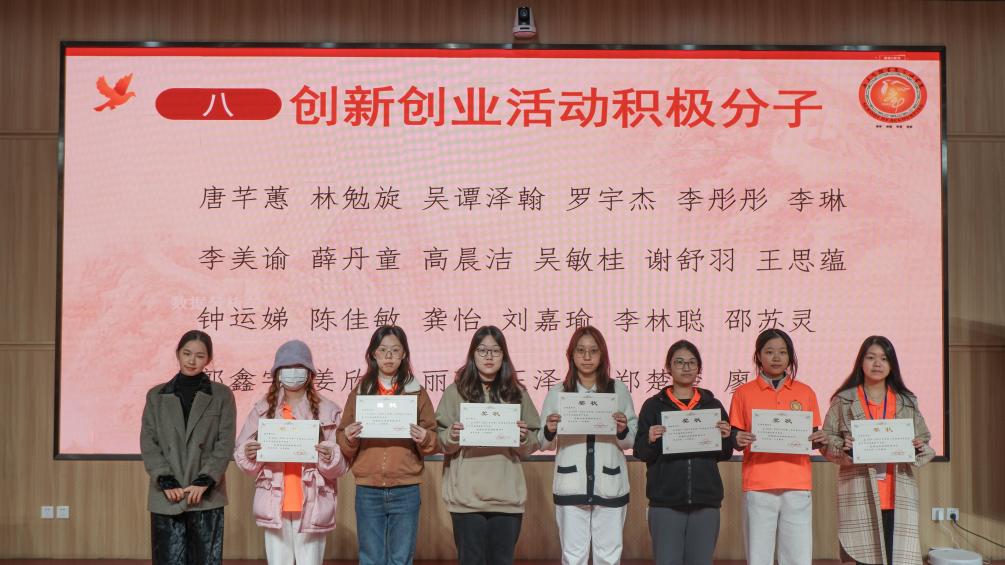 颁奖环节,获奖代表上台领奖,领导和老师为获奖代表颁奖。