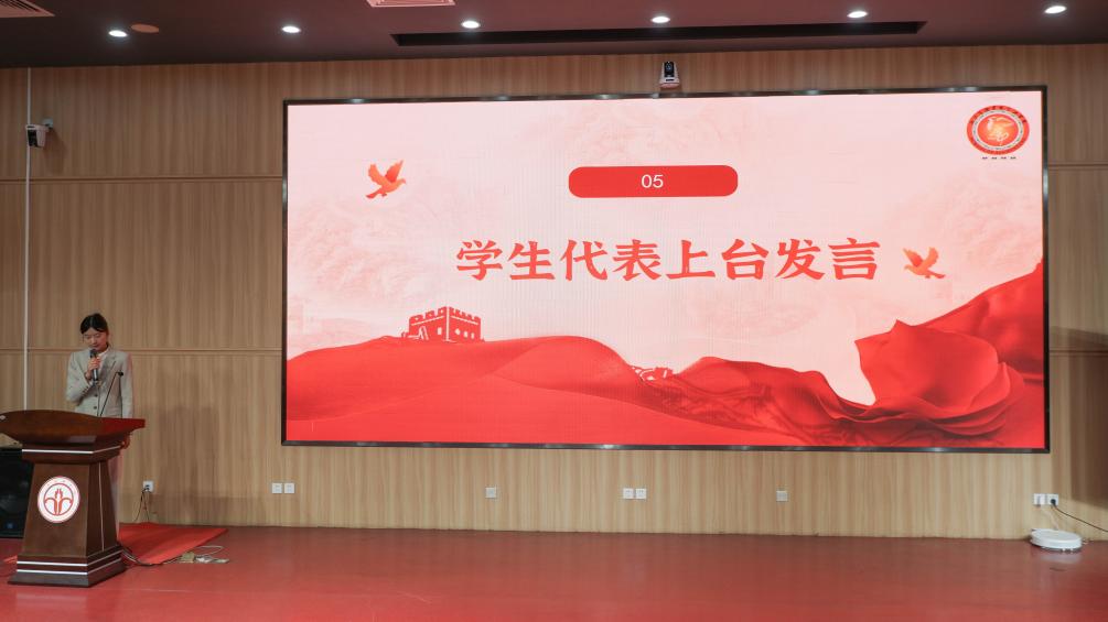 员工代表王蔚然发言,她呼吁同学们应不忘初心、牢记使命,以新时代青年担当为己任,在考试中严守考风考纪,共筑诚信校园。