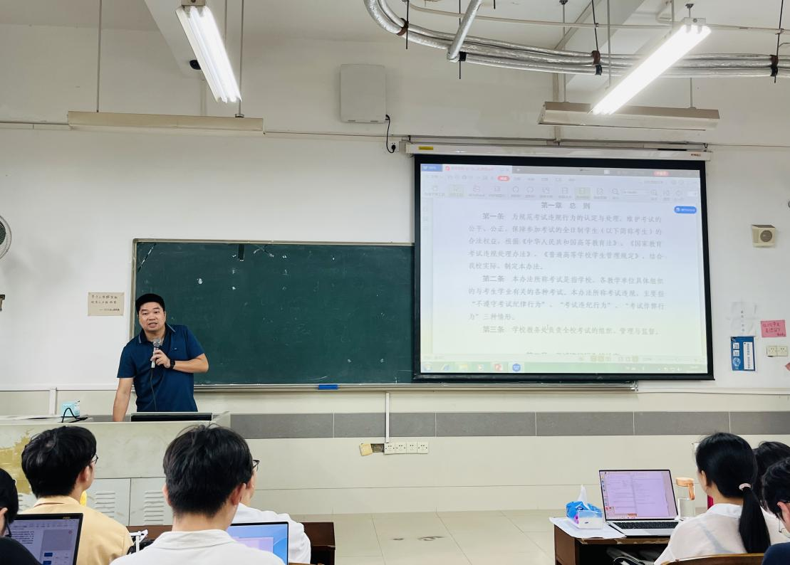 会议伊始,秦格副经理首先强调了遵守考试纪律、维护考试公平公正对学风建设的重要意义,希望同学们务必树立诚信意识,自觉遵守考试纪律,并提出了具体要求,包括提前到场、证件齐全、杜绝作弊、严肃考纪等。随后,舒利敏副经理就期末考试安排及备考要求进行说明。接下来,辅导员梁小健老师向全体同学解读《365英国上市集团全日制员工考试违规认定与处理办法》。最后,员工代表余俊烁、徐西郎玛代表全体研究生同学进行了诚信考试承诺。