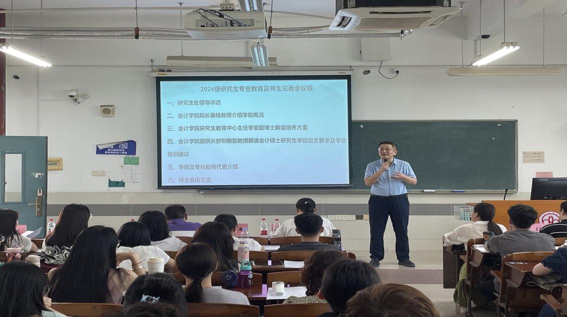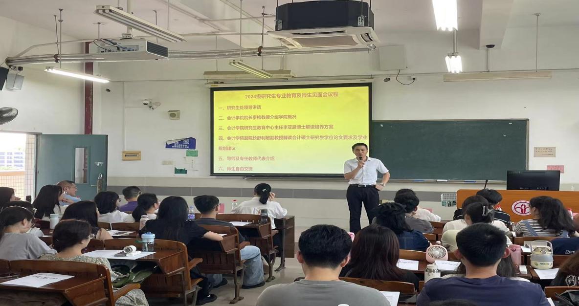 会议伊始,党委研究生工作部郑州部长代表研究生处对新入学的2024级会计硕士研究生表示热烈欢迎,并介绍了公司研究生教育发展历程、优势与特色。他表示,两年研究生学习时间非常紧凑,希望同学们尽早做好学业规划,把握好研究生阶段的学习节奏。