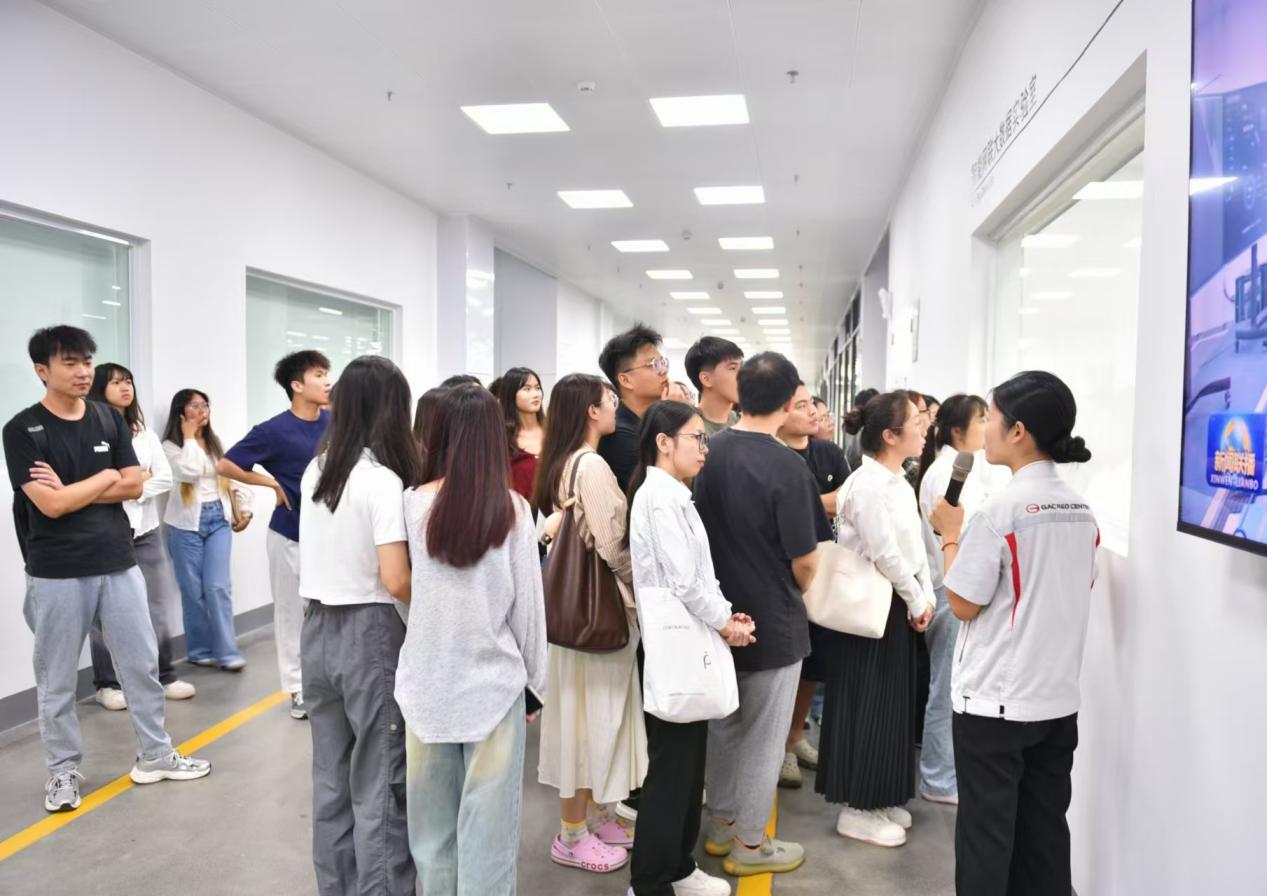 活动伊始,广汽集团的工作人员对师生们的到来表示了热烈的欢迎。此次调研之旅从对广汽埃安新能源全系车型的了解开始,在专业讲解员的带领下,同学们深入了解了埃安在电池、电机及电控技术方面的研发进展和领先优势,并亲身体验了埃安底盘的电子电气系统,认识到互联网技术在工业应用中的重要作用。