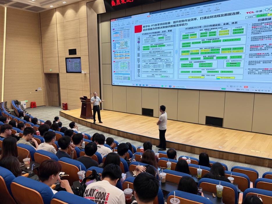 为深化会计硕士(MPAcc)研究生对行业前沿的认识,会计学位教育中心组织公司2024级会计硕士研究生于2025年6月17日下午前往广州华星光电半导体显示技术有限公司(简称“广州华星光电”)进行了参访学习活动。本次活动由舒利敏副经理带队,共计60余名师生参与了本次活动。